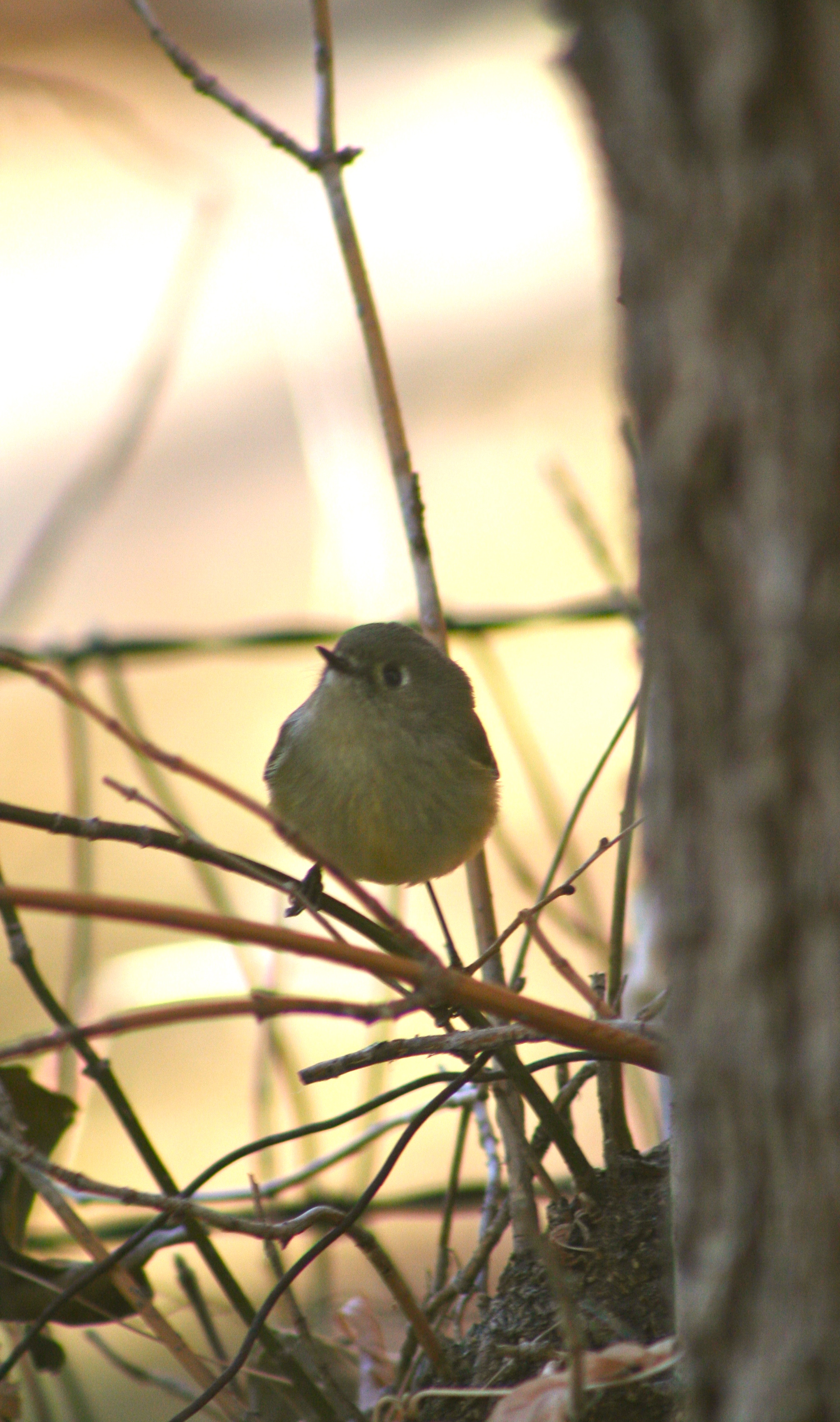 Lastly, I would like to include a poor photo of a bird that visited my feeder a few days ago. The Ruby-crowned Kinglet is not so common, but oh so delightful to see. As cute as the Merlin and Kestrel are, the Kinglets take the cake.