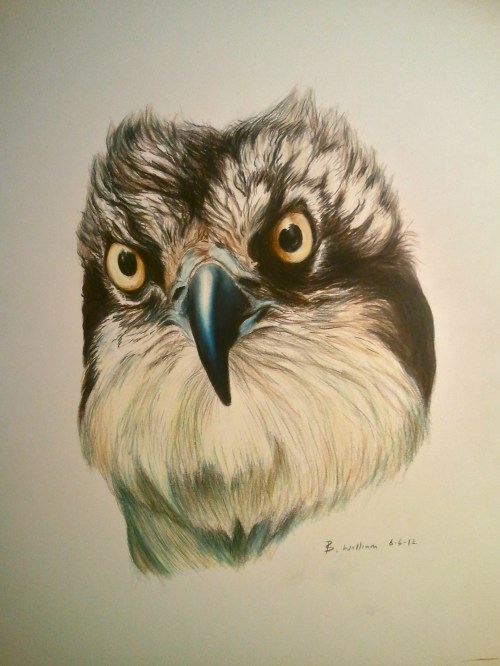 Osprey- Pandion haliaetus. 11×14″ colored pencil on bristol