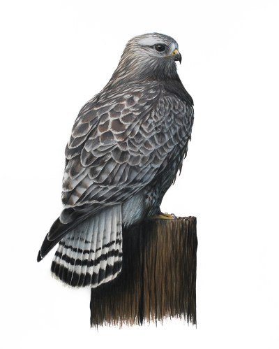 Rough-legged Hawk- Buteo lagopus. 11×17″ prismacolor on bristol
