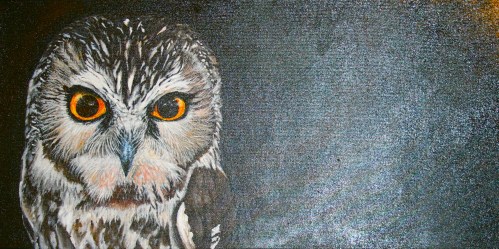 Northern Saw-whet Owl- Aegolius acadicus. 12×24″ acrylic on stretched canvas. SOLD