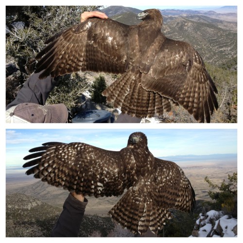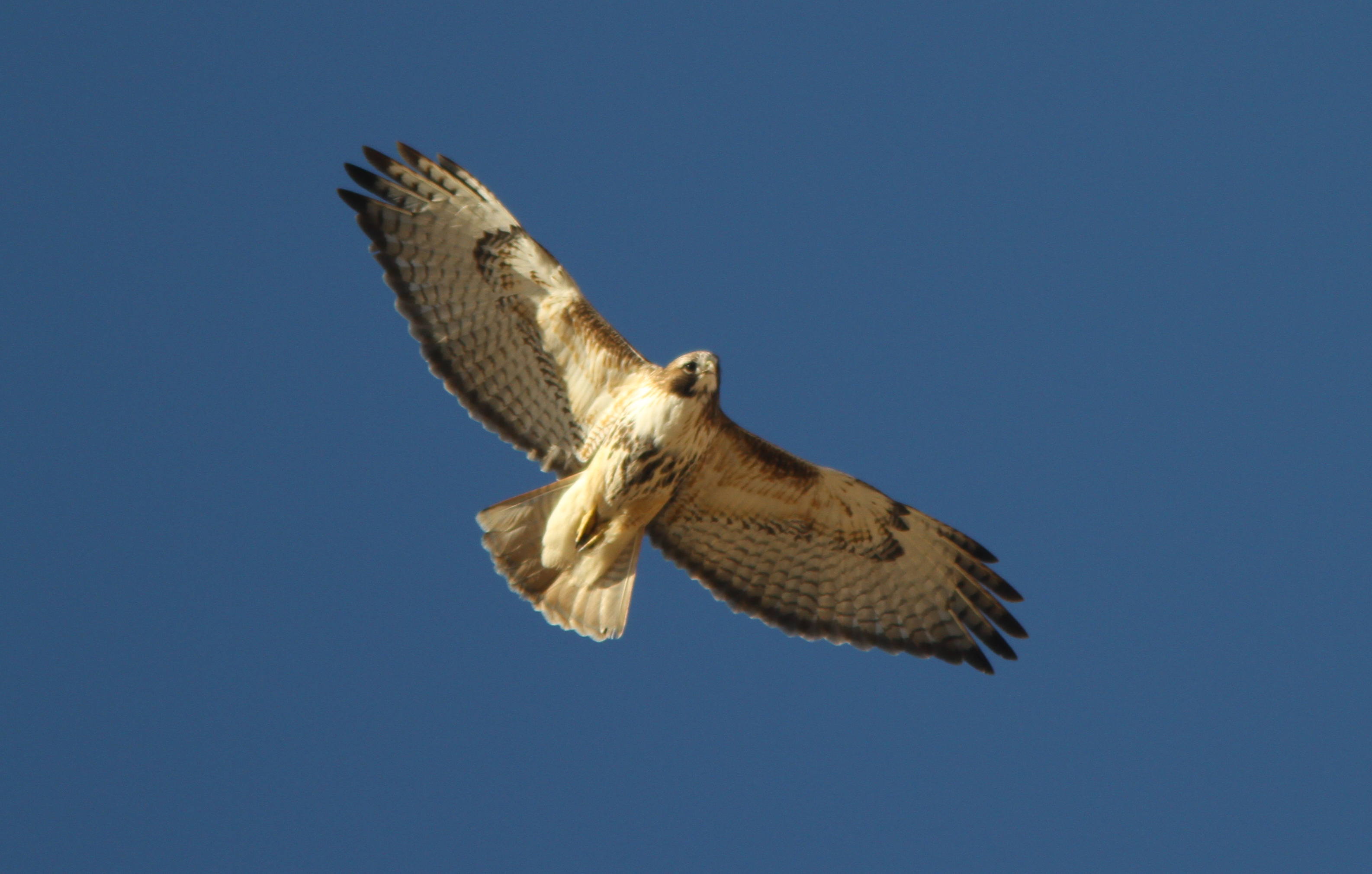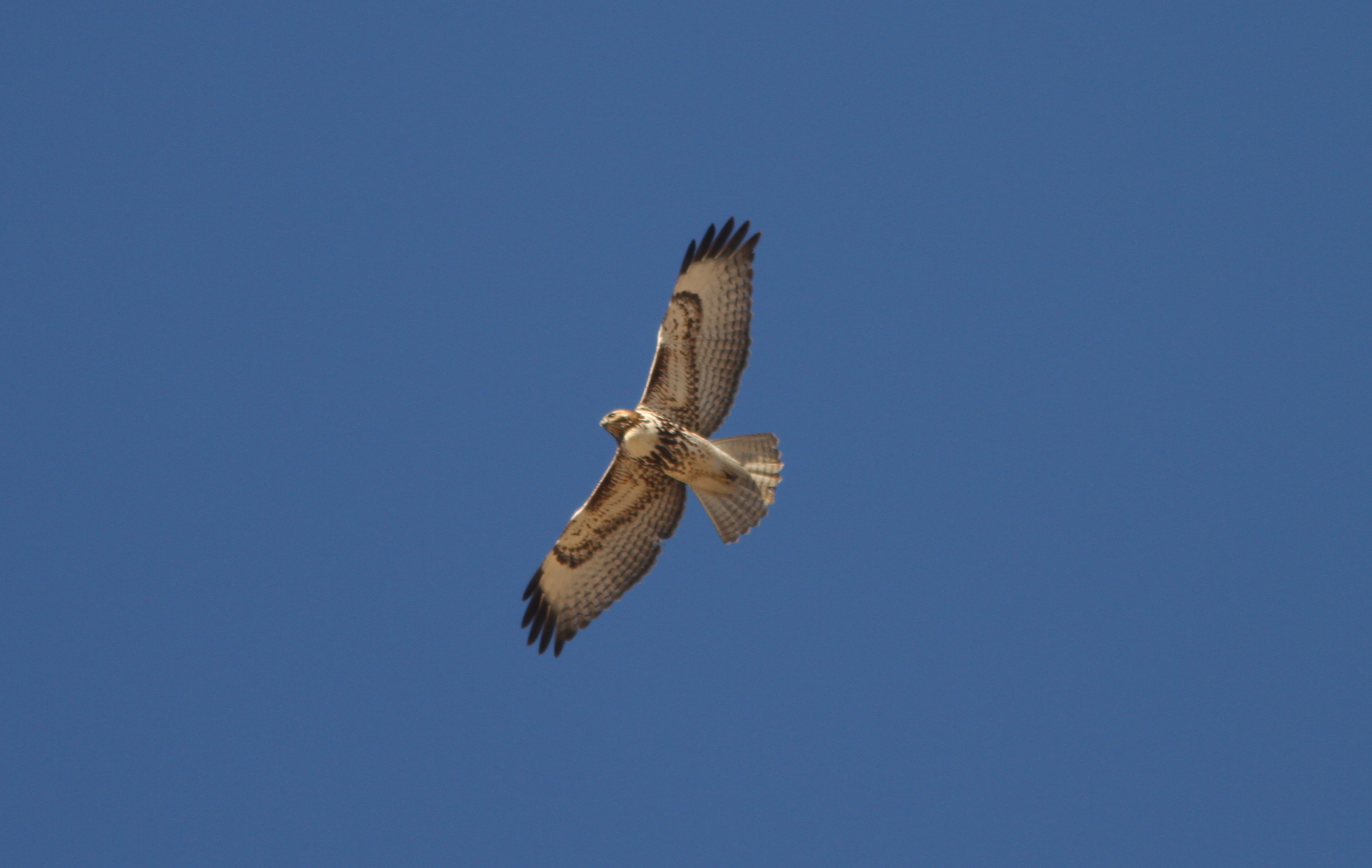 It was delightful to watch the numerous birds interact with each other. Near the peak of the mountain five birds flew, toying with one another. As it appeared, the birds seemed to be enjoying the sun, with full crops and playful spirits. As I watched, I noticed that one of the birds was in fact a Rough-legged Hawk. The interaction did not appear aggressive, which made the sight much more peculiar. Seeing the Buteo’s fly together reminded me of a bird found last year in the mid-west. It appeared to be a hybrid between a Red-tailed Hawk and a Rough-legged. When breeding season comes, and birds have trouble finding a mate, it can happen that two birds of different species pair up in desperation to procreate. I have even heard of Ferruginous Red-tailed Hawk hybrids.