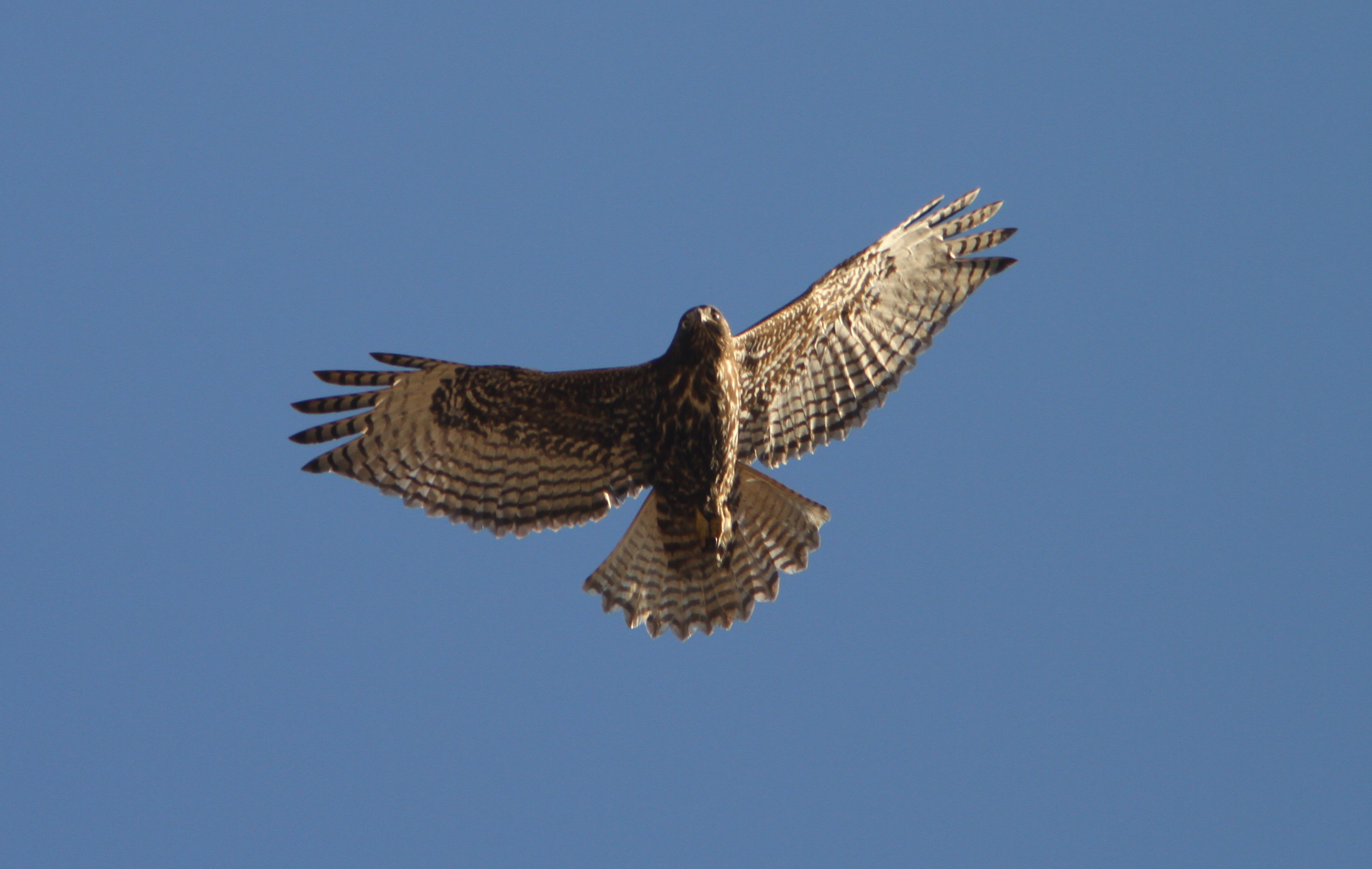 The fact is that with a bird so diverse in plumage as the Red-tailed Hawk, there is going to be some overlap and interbreeding between regional “subspecies”. What results are birds that show characteristics of one strain, but overall resemble another. I found a bird a few weeks back that was a dark morph western Red-Tailed Hawk, yet it had a heavily banded tail that faded from a cream color at its base to a nice orange at the terminal end. At first glance I was excited at the possibility of a Harlan’s, however when I reviewed my photos, I found the bird to be a nice chocolate brown with rufous highlighting. After consulting Jerry, I learned of the importance of leaving some birds a mystery. The bird could have been an intergrade of some sort, or something else more mysterious and exciting. For now I have no conclusion, but I have come to terms with that and moved along. In the future, I may find another bird that shares the same traits, and may be armed with the knowledge and resources to discover where the bird is from and why it is so peculiar.