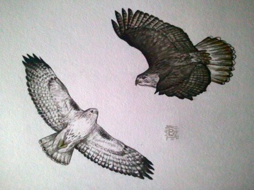 Embracing my extreme fixation with Harlan’s of late, I decided to devote my free time today to illustrating a bird I am very unfamiliar with. I have only seen one light morph Harlan’s Hawk in the field, and I see that as a problem. To learn the bird better, I referenced an article written by Jerry Liguori and Brian Sullivan, detailing the plumage characteristics of Harlan’s Hawks in detail. An extension of the article provided me with numerous photographs to utilize in putting together my interpretation of a light morph bird.