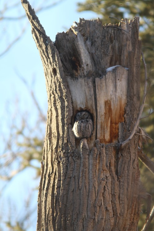 With the help of friends, I was finally shown a needle in a haystack. I’ve searched long and hard for the cavity roosting Megascops kennicottii. I have repeatedly checked known roost sights with no success. After my experience the past summer with the Western Screech Owl, I became even more obsessed with finding the bird in daylight. Sometimes it’s about knowing the right people and getting lucky.