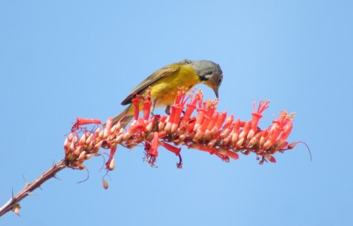 Another Warbler that was very present along the stream was an Audubon’s Yellow-rumped Warbler. These birds are very common, but always fun. In the desert the past week, I have been seeing a few migrating warblers. One particular difficulty I have faced is differentiating between what might be a MacGillivray’s Warbler and a Nashville’s Warbler. To the experienced birder, this might seem silly. I have no problem admitting that I am still learning some simple problems. Today, however, I finally saw a bird to solidify the knowledge to distinguish the two.